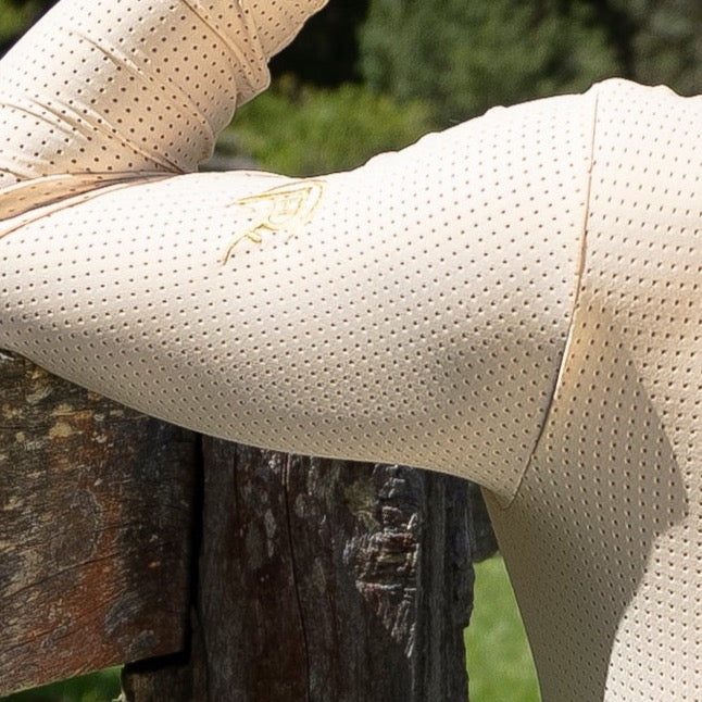 With its softly muted warm hue, the long sleeve Apricot Breeze Shirt brings a relaxed yet refined look to your riding kit.